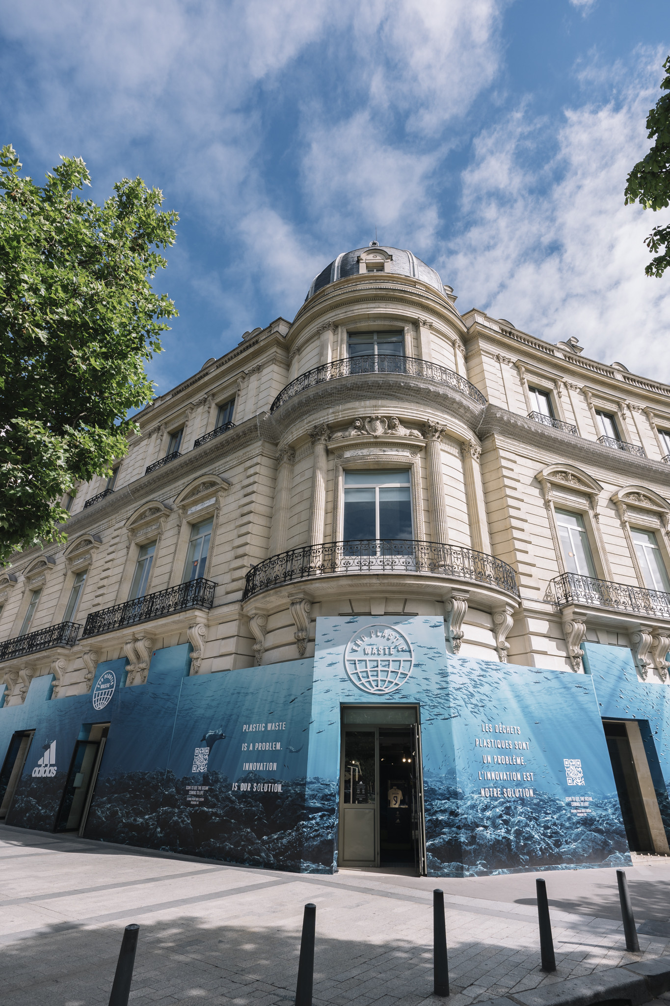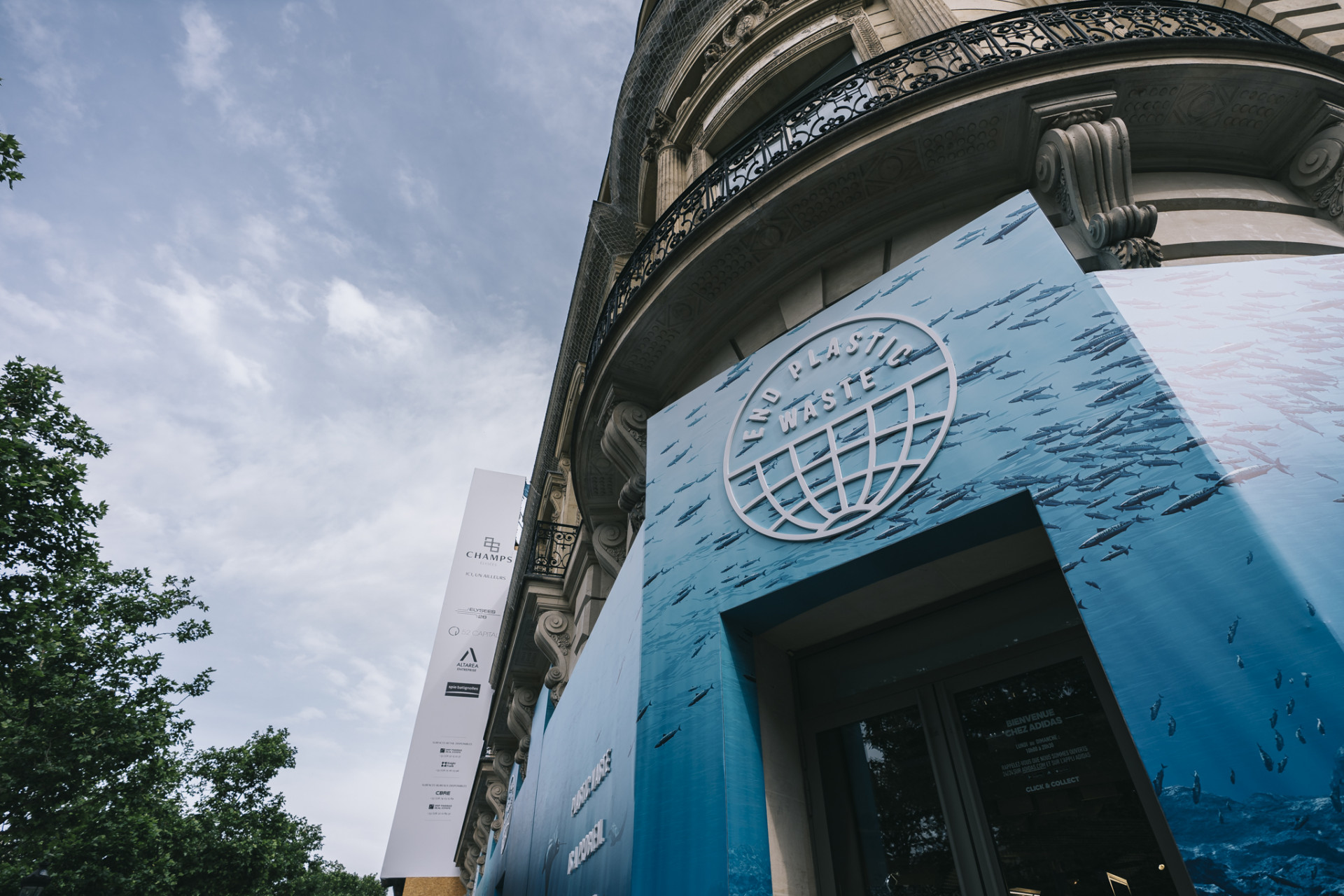Scénographie urbaine → Retour sur la dernière façade conçue pour la campagne adidas “End Plastic Waste” au Flagship Store des Champs-Elysées.