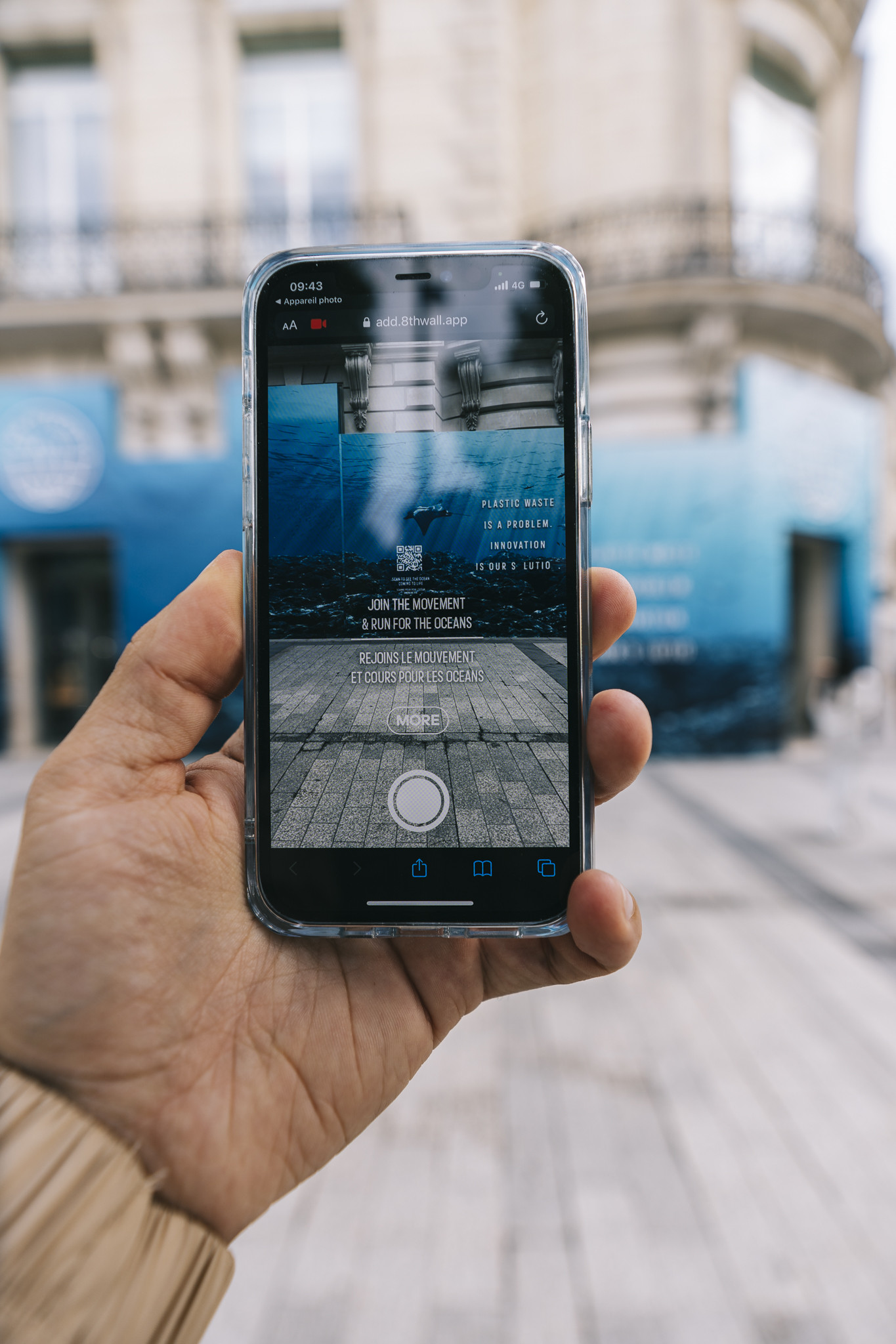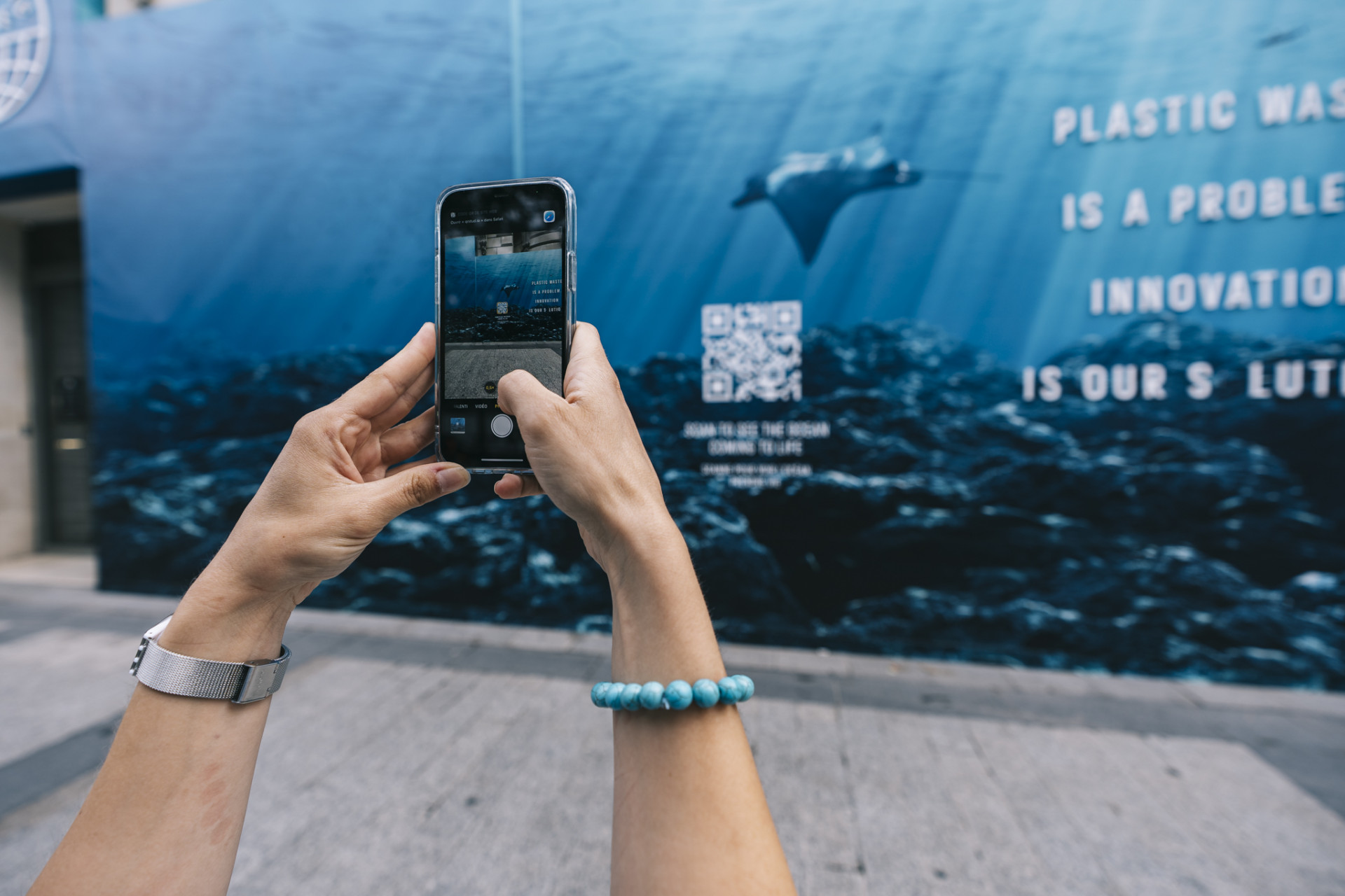 Cette façade a été pensée pour sensibiliser à la présence de plastique dans nos océans.