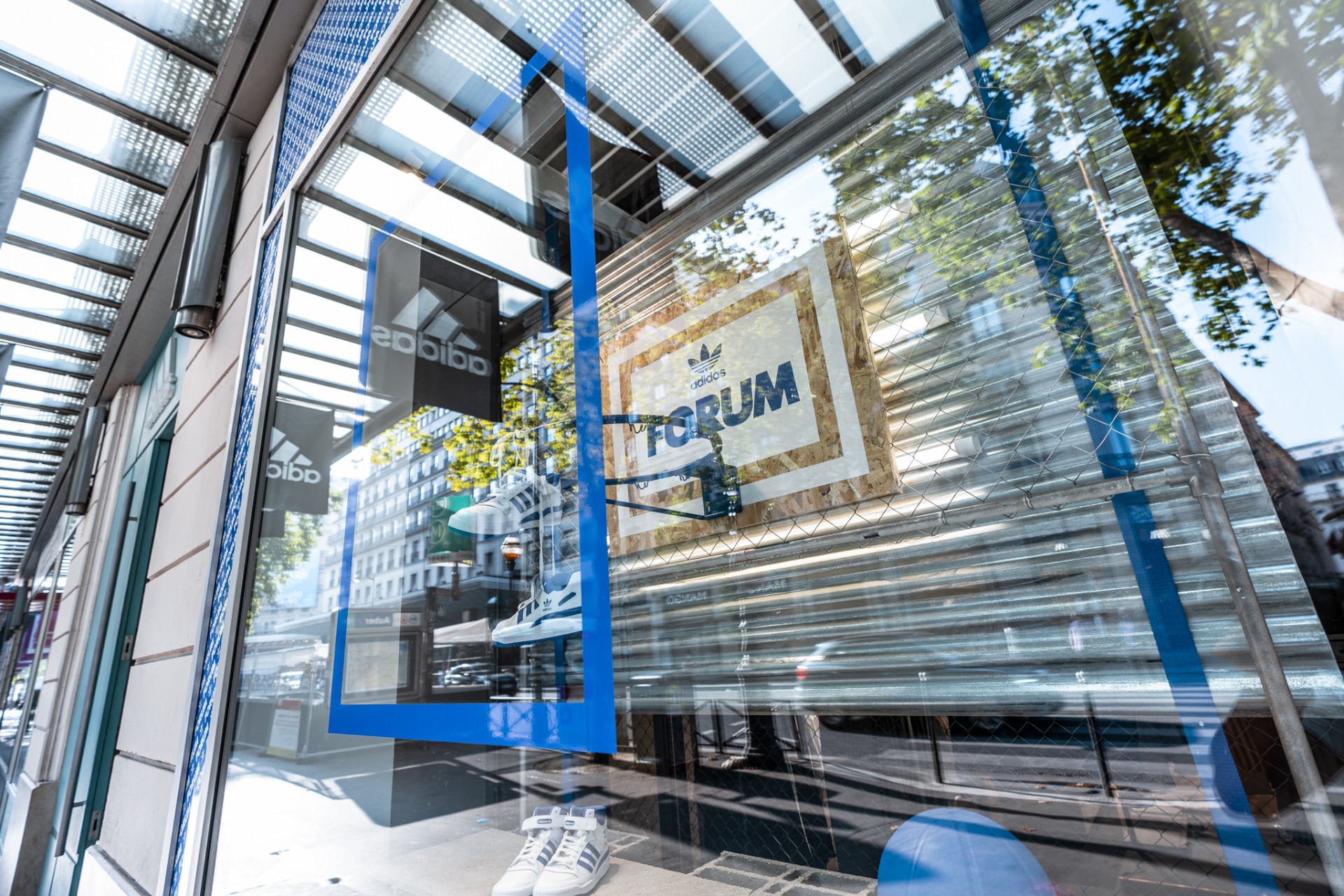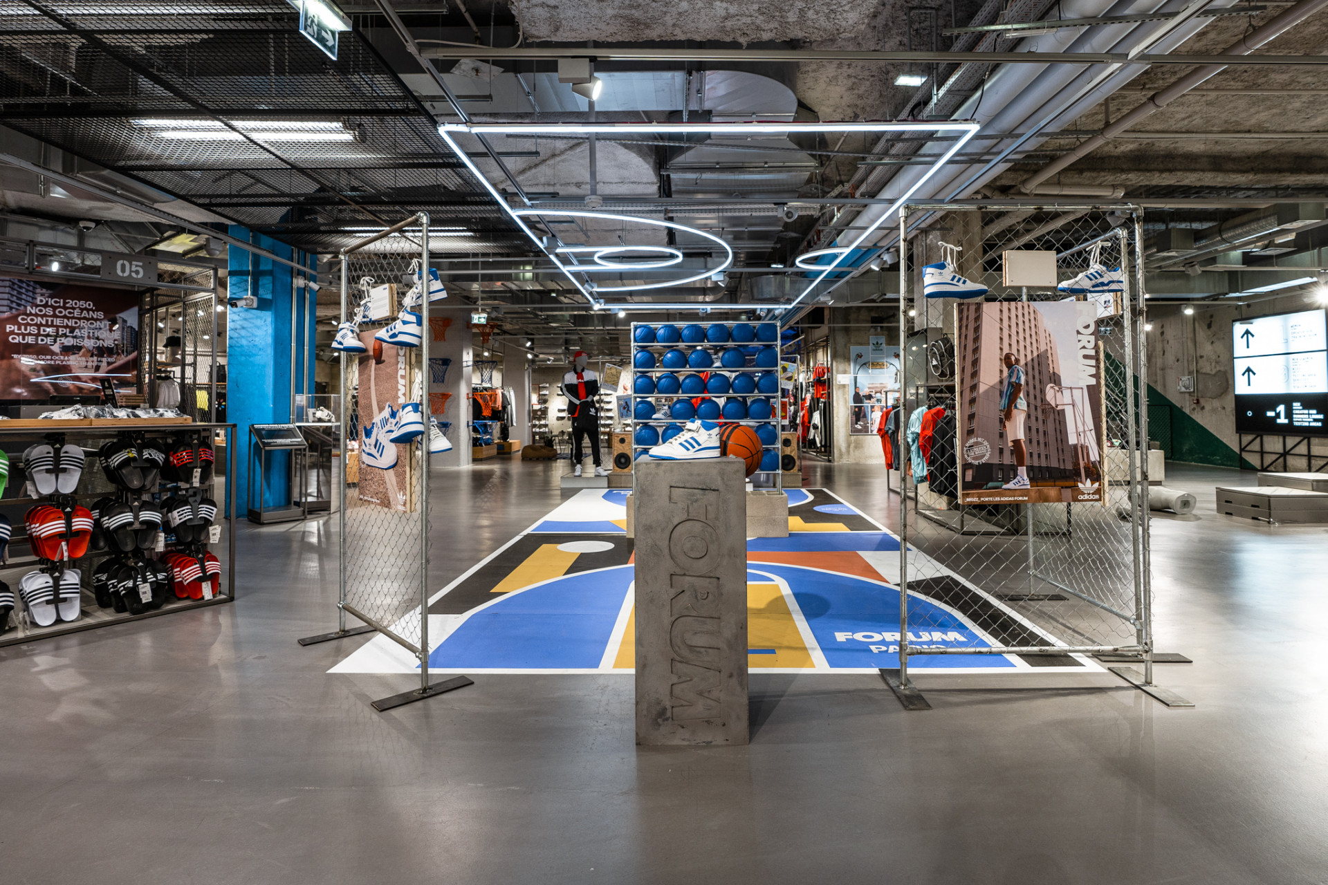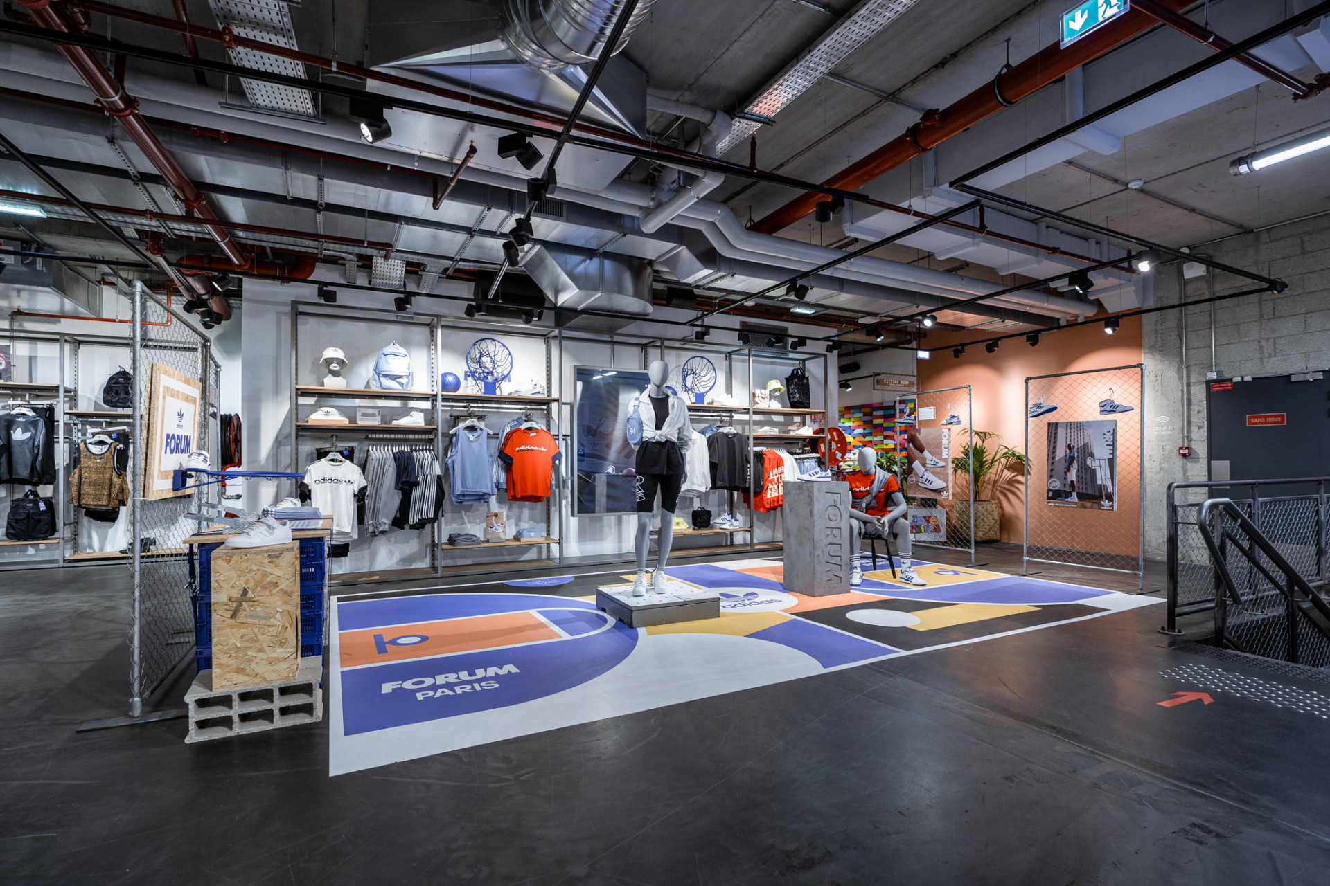 For the release of the new Forum Adidas, together called on many artists and scenography studios to transform the three Adidas stores in the capital, by combining basketball culture of the 1980s with that of a bold and responsible new generation.
