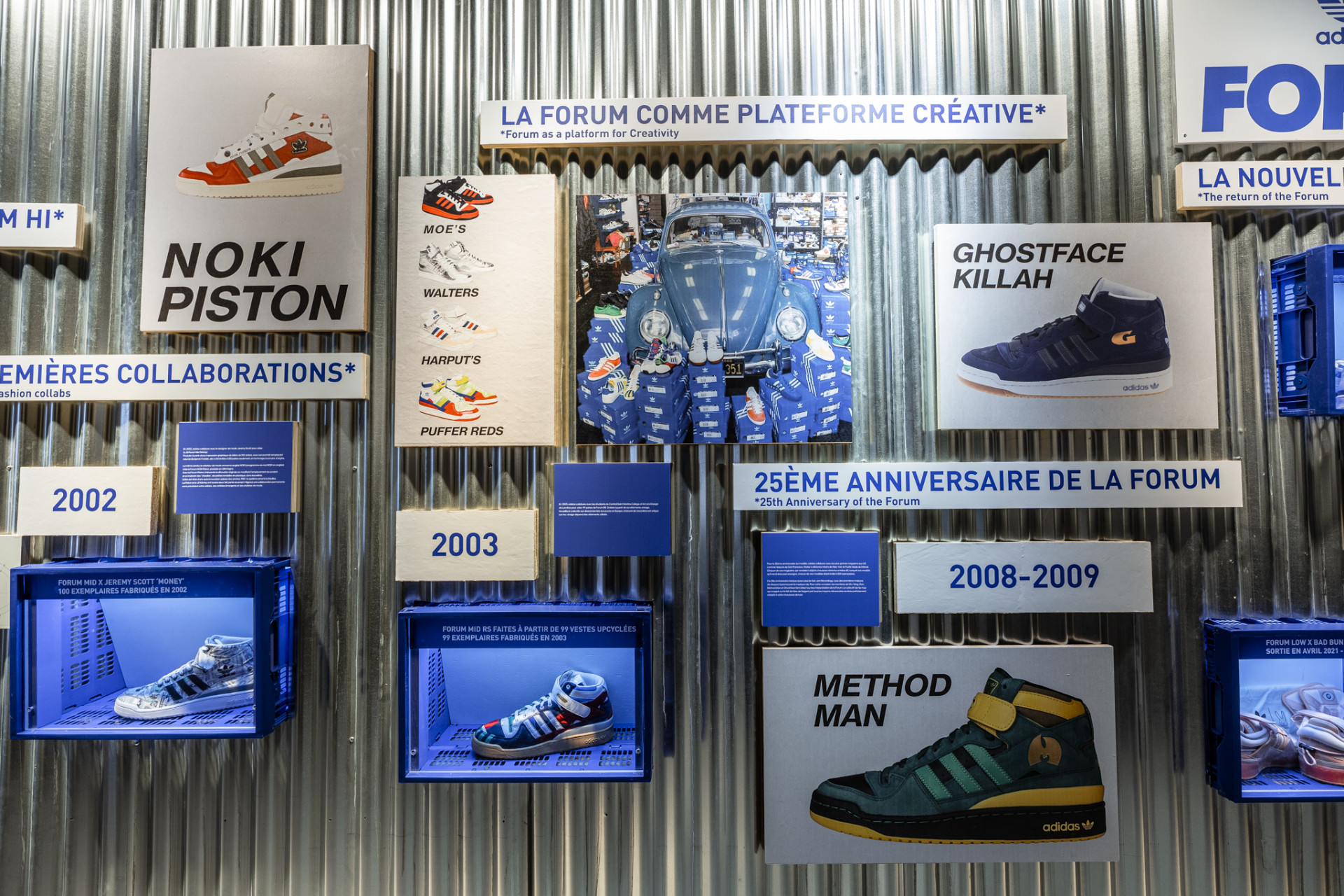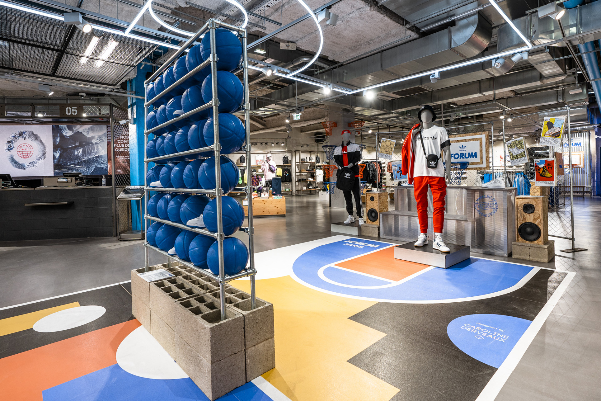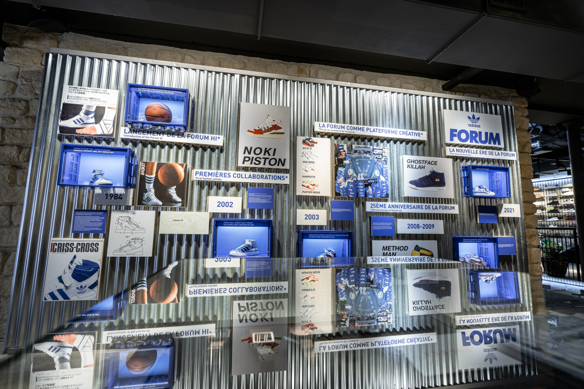 For the release of the new Forum Adidas, together called on many artists and scenography studios to transform the three Adidas stores in the capital, by combining basketball culture of the 1980s with that of a bold and responsible new generation.