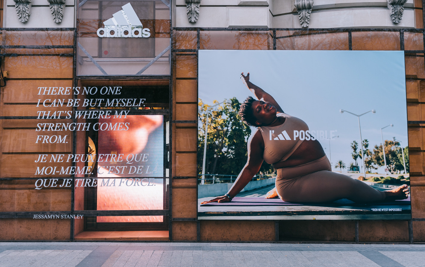 As a part of the “Impossible is Nothing” campaign, adidas called on togaether to design an urban scenography at the Flagship store on the Champs-Elysees. The facade was made entirely of PMMA featuring the visuals of all the women in the campaign.