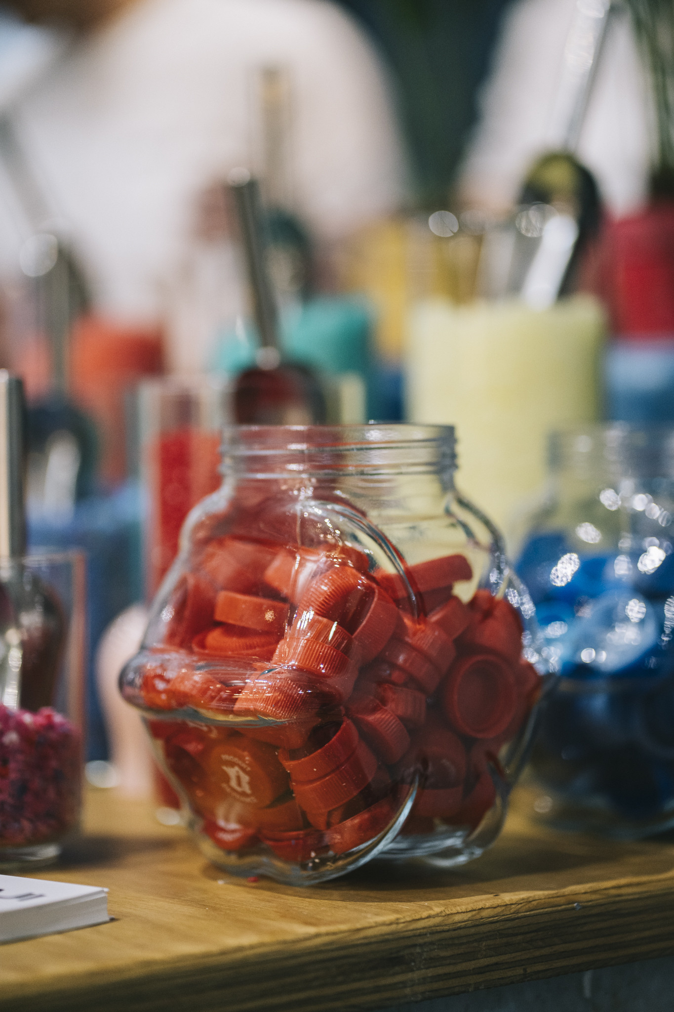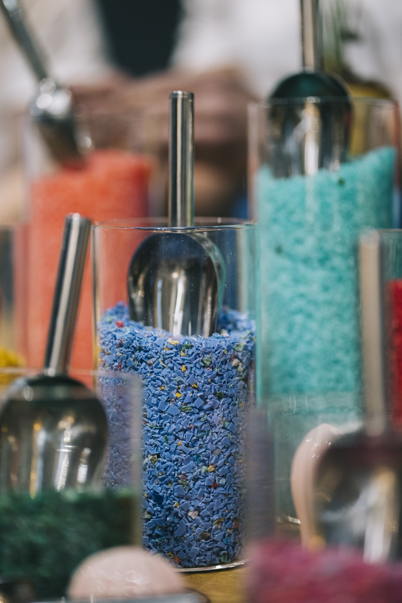 The scenography is 100% recycled from 1200 kilos of plastic, illustrated by Maxime Louis Courcier and designed by Atelier Samji.