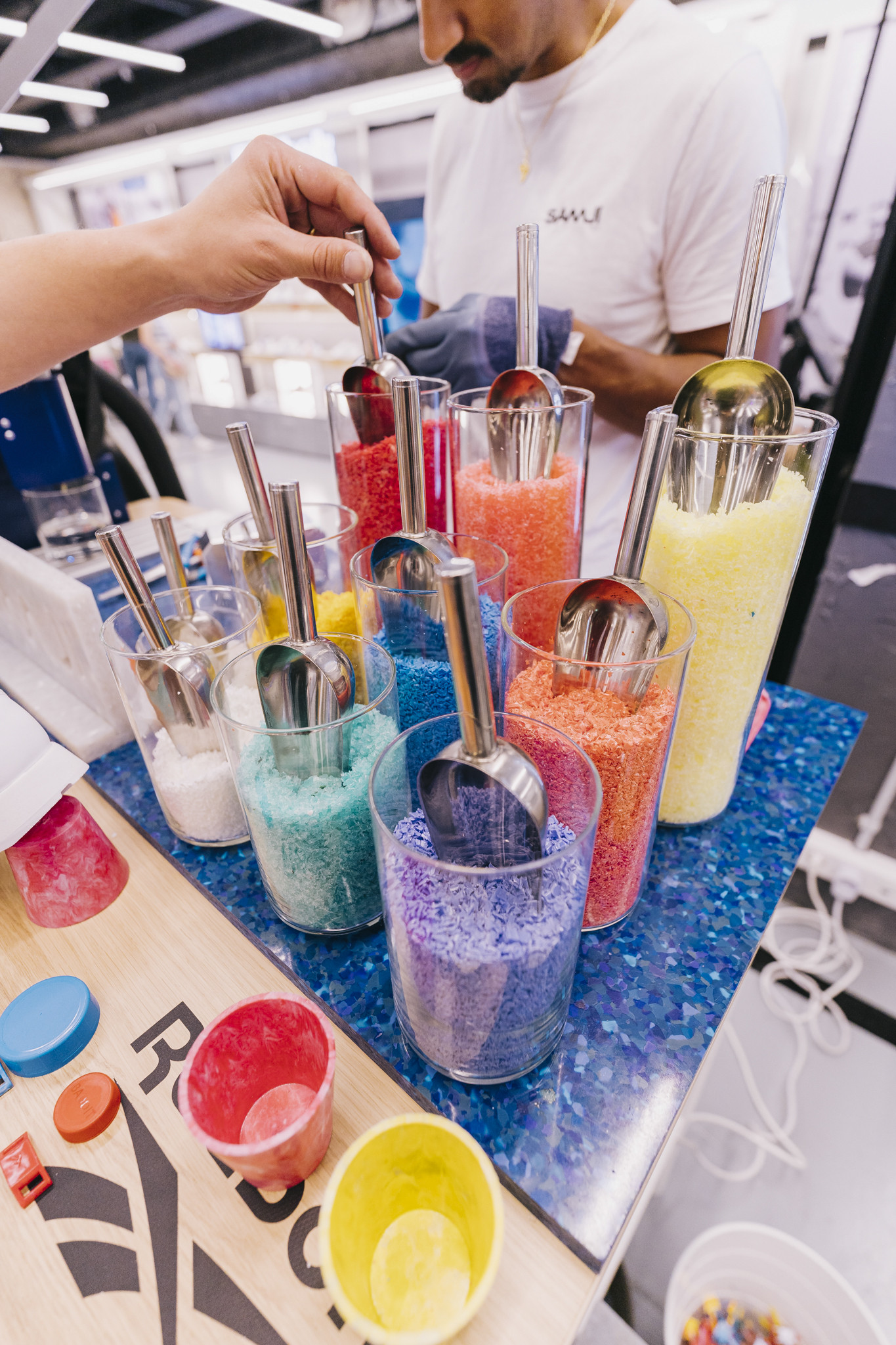 Upcycling activation → Return on the animation of Atelier Samji in the Reebok corner at the Citadium Caumartin, with live manufacturing of lace tags made out of recycled plastic.