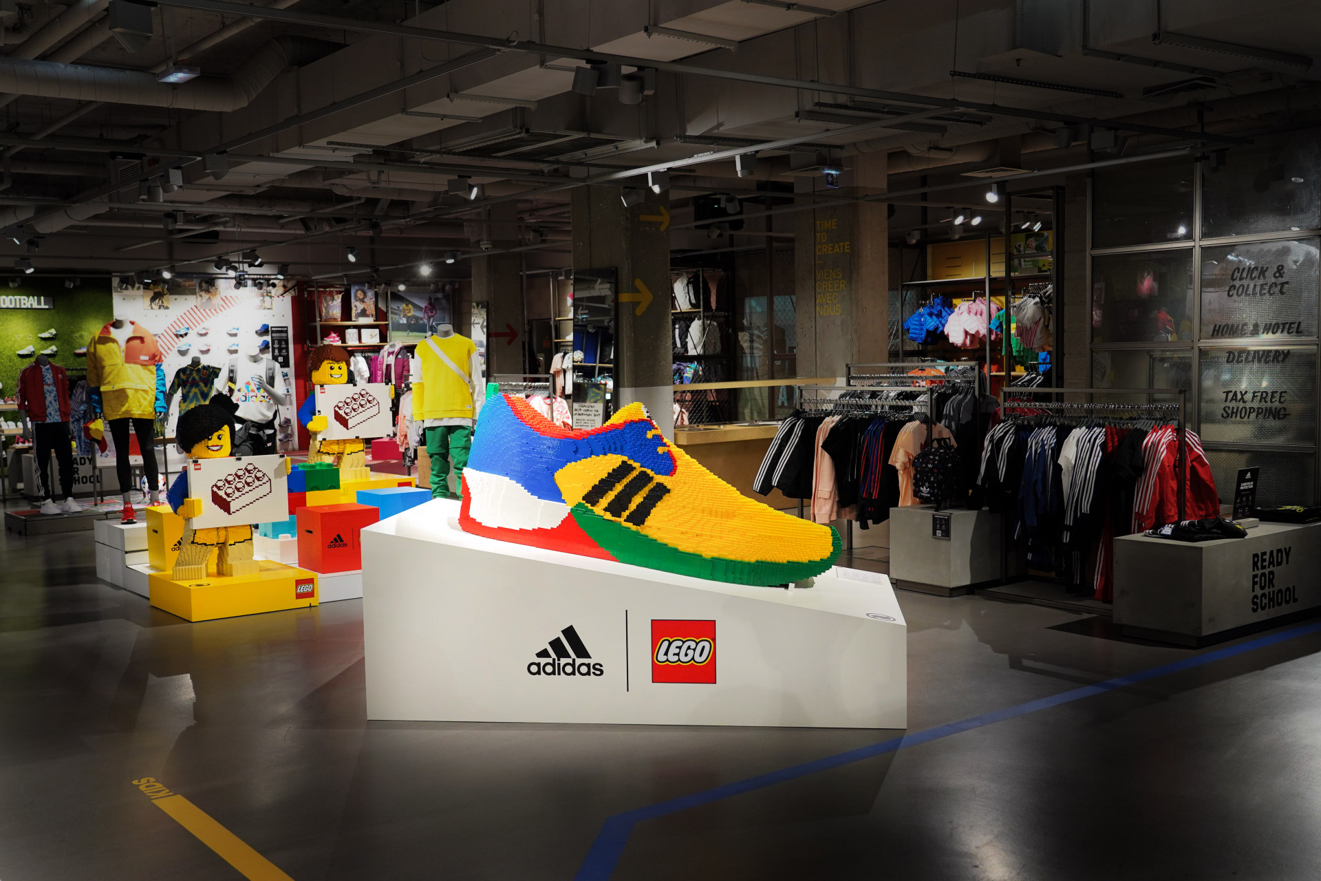 «The power of play» is the theme of the collaboration between Adidas and LEGO, which presents the world as a playing field. Designed to inspire creativity, the scenography produced by togaether gathered 33,000 pieces of LEGO which took 180 hours to construct.